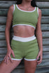 Composé d’un crop top et d’un short taille haute, il épouse le corps sans comprimer et se porte aussi bien au quotidien qu’en look chill ou vacances.